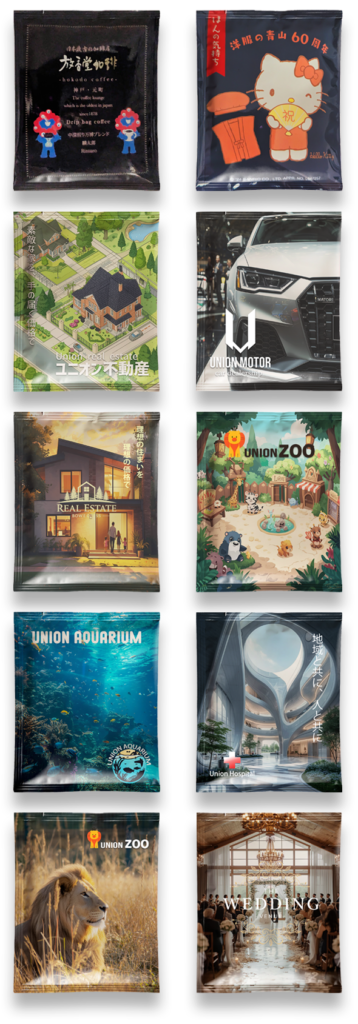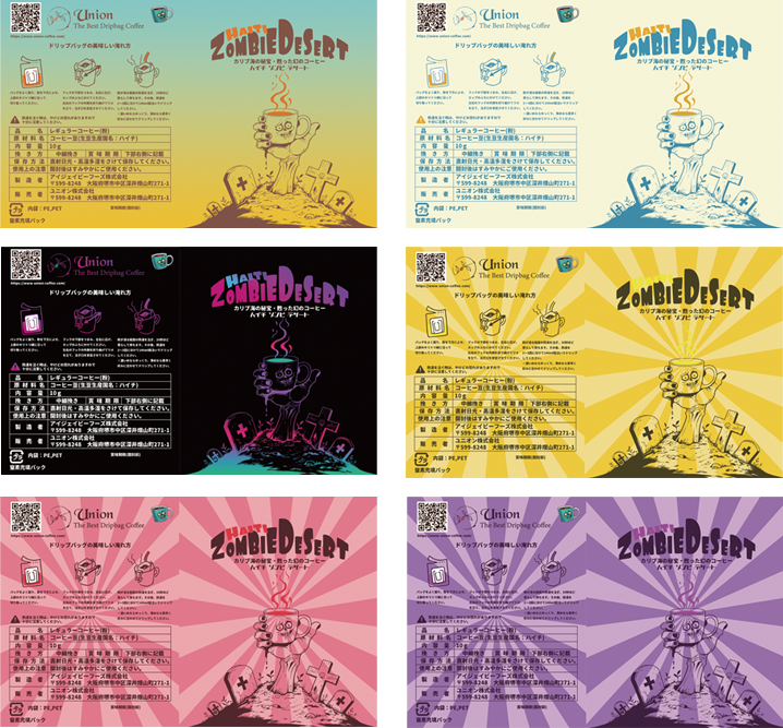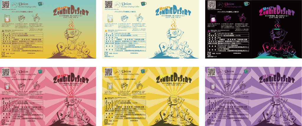 オリジナルブレンドコーヒー豆をそのままに 7パターンのデザインの作成ができます。 配色だけ、文字だけの変更や、完全に別の デザインも指定可能です。 季節、イベントシーンに合った複数の デザインでドリップバッグコーヒーを作成 することができます。