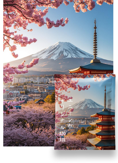観光名所や都市でイベント、町おこしに オリジナル珈琲を制作しませんか? 弊社では7パターンのデザイン展開が可能 ですので、観光地の各名所や市の風景を デザインすることができます。