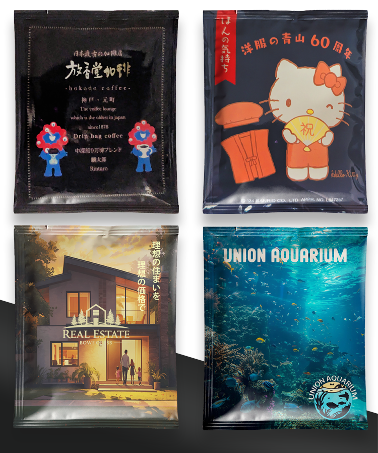弊社では、依頼されたデザインで計20万個のドリップバッグを作成しました。