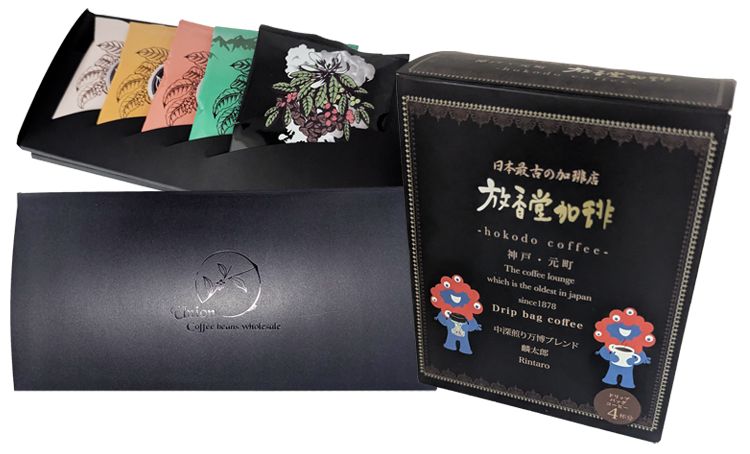 京都宇治茶の茶商であった放香堂は、幕末に外国に茶葉を 輸出するため神戸へ進出。 空で返ってくる茶壷に、珈琲豆を詰めて輸入を始めました。 当時ハイカラな飲み物であったコーヒーを神戸で 庶民に振る舞ったことから日本初の コーヒー店となったのです。 放香堂加琲様のご依頼により、 EXPO 2025大阪・関西万博仕様の ドリップバッグコーヒーを作成しました。